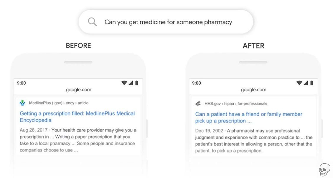 После BERT Google лучше понимает намерения поисковика и теперь выдает результат о том, может ли пациент отправить друга или члена семьи за рецептом.