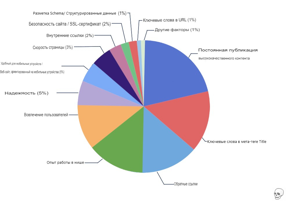 | Ключевые слова в тегах Meta Description + Другие факторы | 1% |